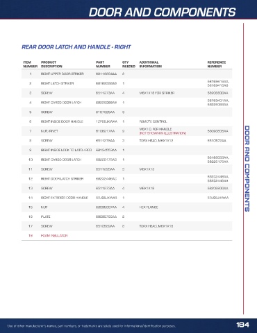 Use of other manufacturer’s names, part numbers, or trademarks are solely used for informational/identification purposes. 184