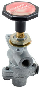 Hand Operated Push-Pull Hostler Valve, Panel or bulkhead mount. Requires 3/4" hole in dashboard. For in-cab applications.