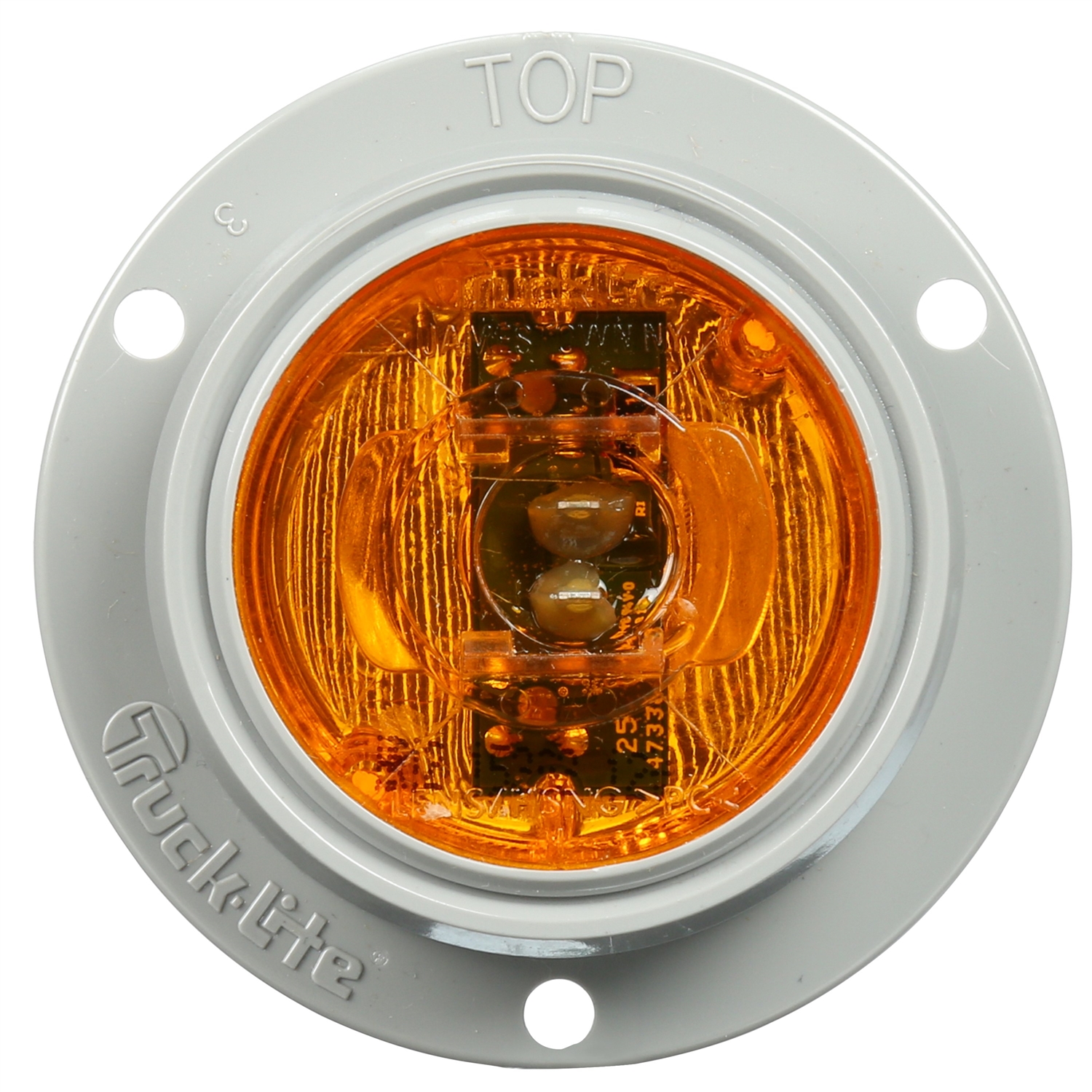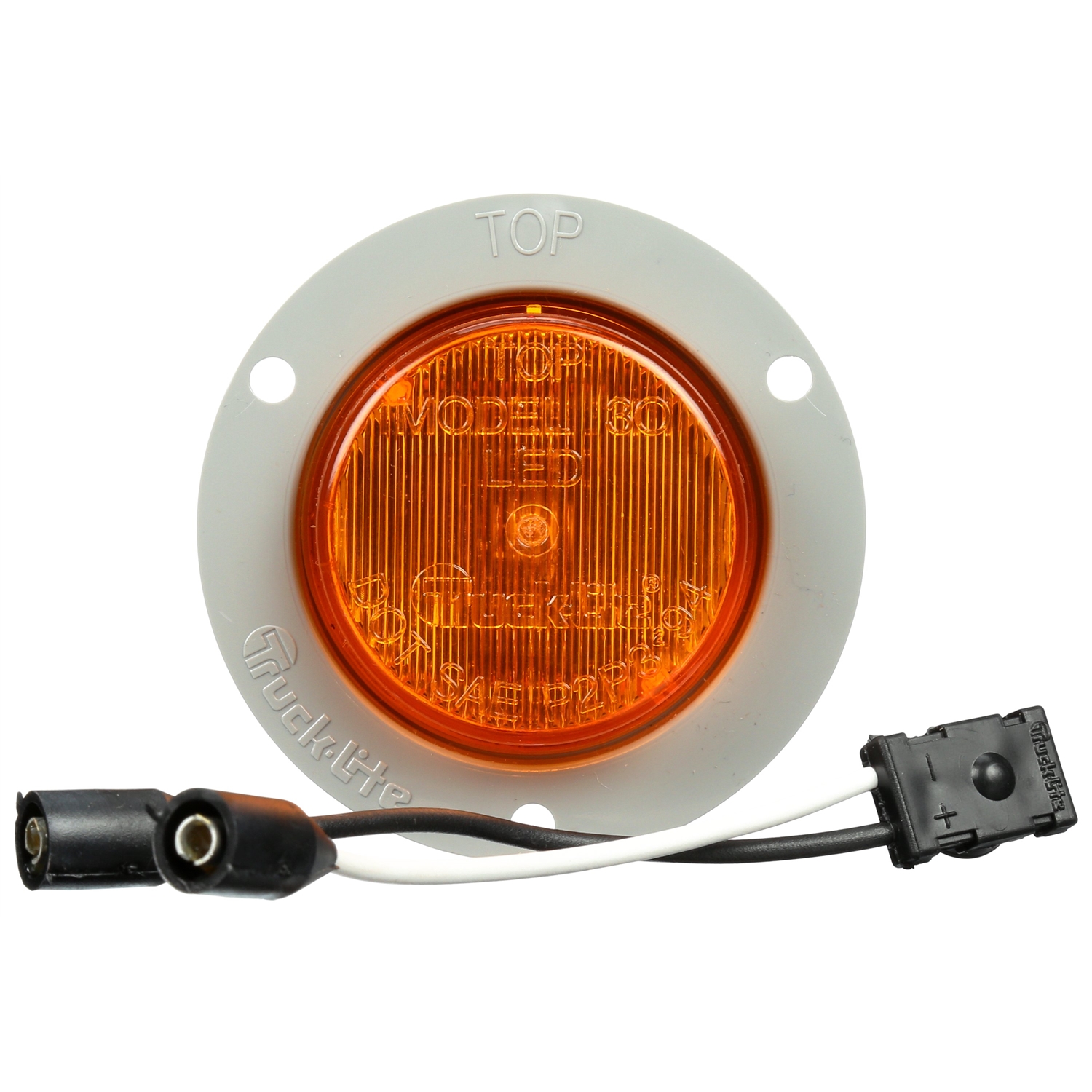 30 SERIES, LED, YELLOW ROUND, 2 DIODE, MARKER CLEARANCE LIGHT, P3, GRAY POLYCARBONATE FLUSH MOUNT, FIT 'N FORGET M/C, FEMALE PL-10, 12V, KIT