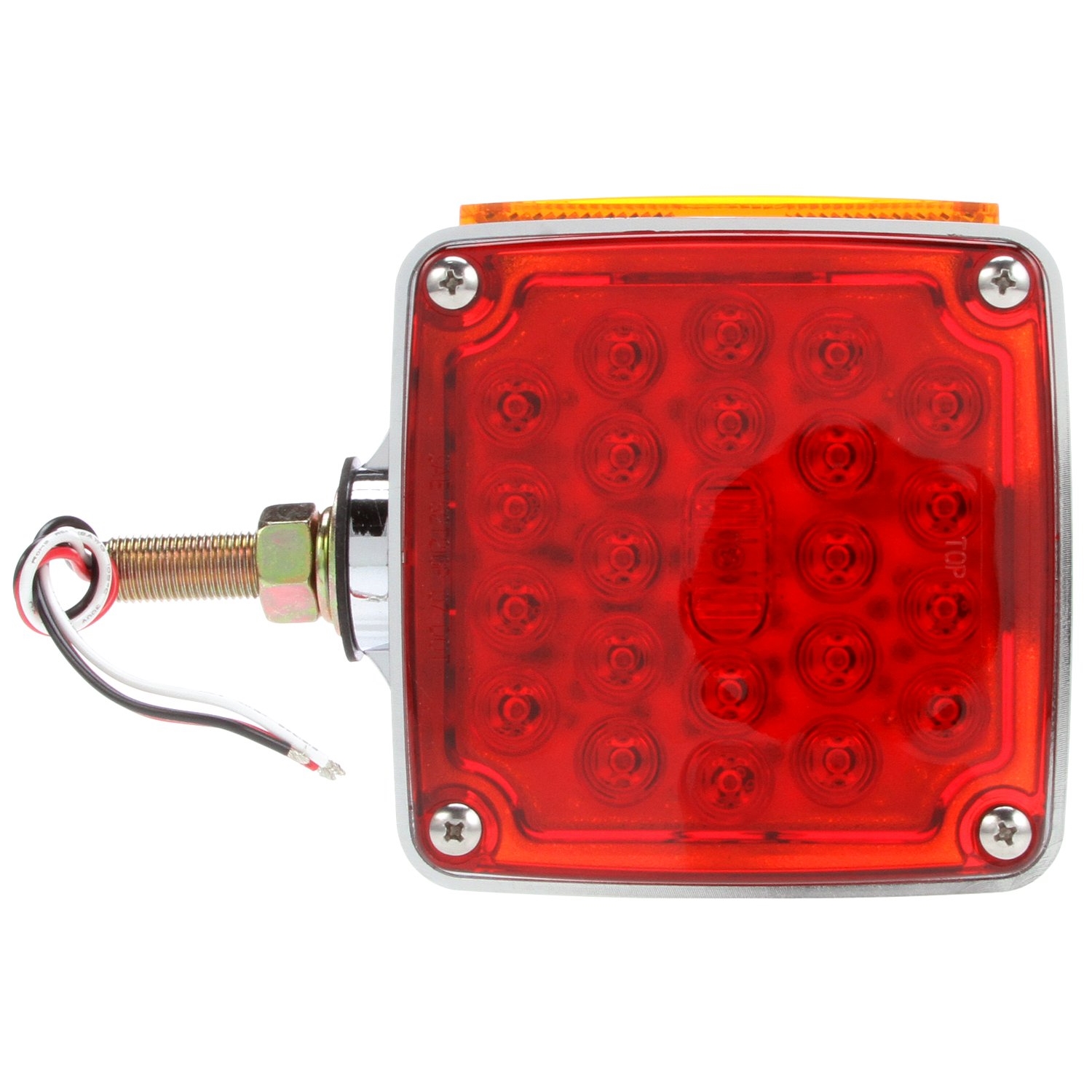 LEDs have less current draw, resulting in increased battery and alternator life while allowing more power for other vehicle requirements Meets SAE J974 for agricultural warning devices 18 diode pattern Unique LED array displays full pattern output Side marker reflex reflector Chrome plated housing Ideal for show trucks, highway, mowing, municipal and farm equipment Epoxy encapsulated electronics protect the lamp from damage caused by chemicals and moisture LEDs have no filament, therefore are extremely resistant to shock and vibration