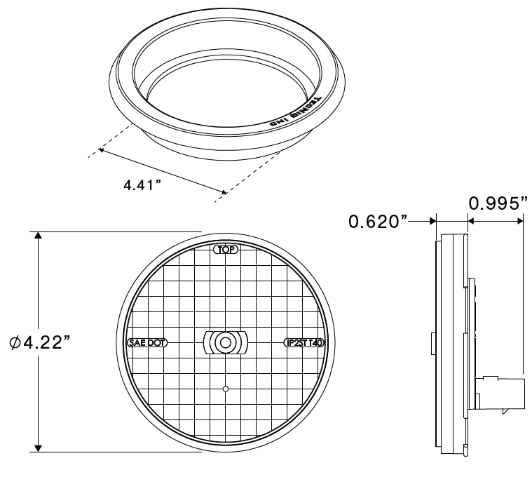 LAMP, TURN - 4" Round / Stop-Turn-Tail / Red Lens / Grommet Mount / 3 Pole / T40 SERIES