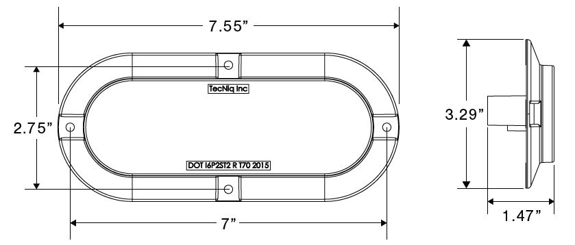 LAMP, STTR - 6" Oval / Stop-Turn-Tail-Reverse / SURFACE / Red Lens / Amp Connectors / T70 SERIES